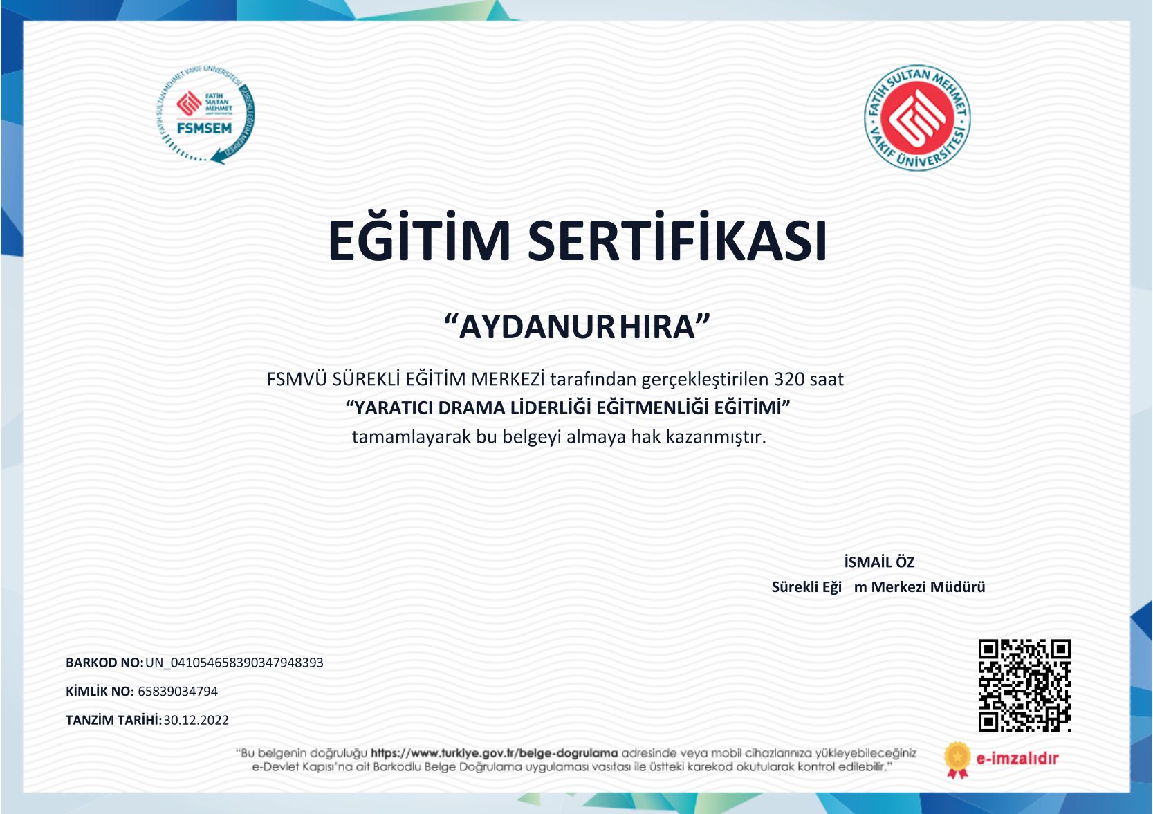 Ayrıca ücretsiz olarak, Aydanur Aktaş Hıra adlı Youtube kanalından “Manevi Uyanış Sohbetlerini” yayınlamaya, zoom üzerinden canlı sohbetler etmeye ve farklı şehirlerde ücretsiz seminerler vermeye devam etmektedir. Bunun yanı sıra Hıra geçmişte Fethiye Kişisel Gelişim Derneği olmak üzere çeşitli sivil toplum kuruluşlarında görev alarak kişisel gelişim alanında birçok eğitim ve organizasyona öncülük etmiştir.